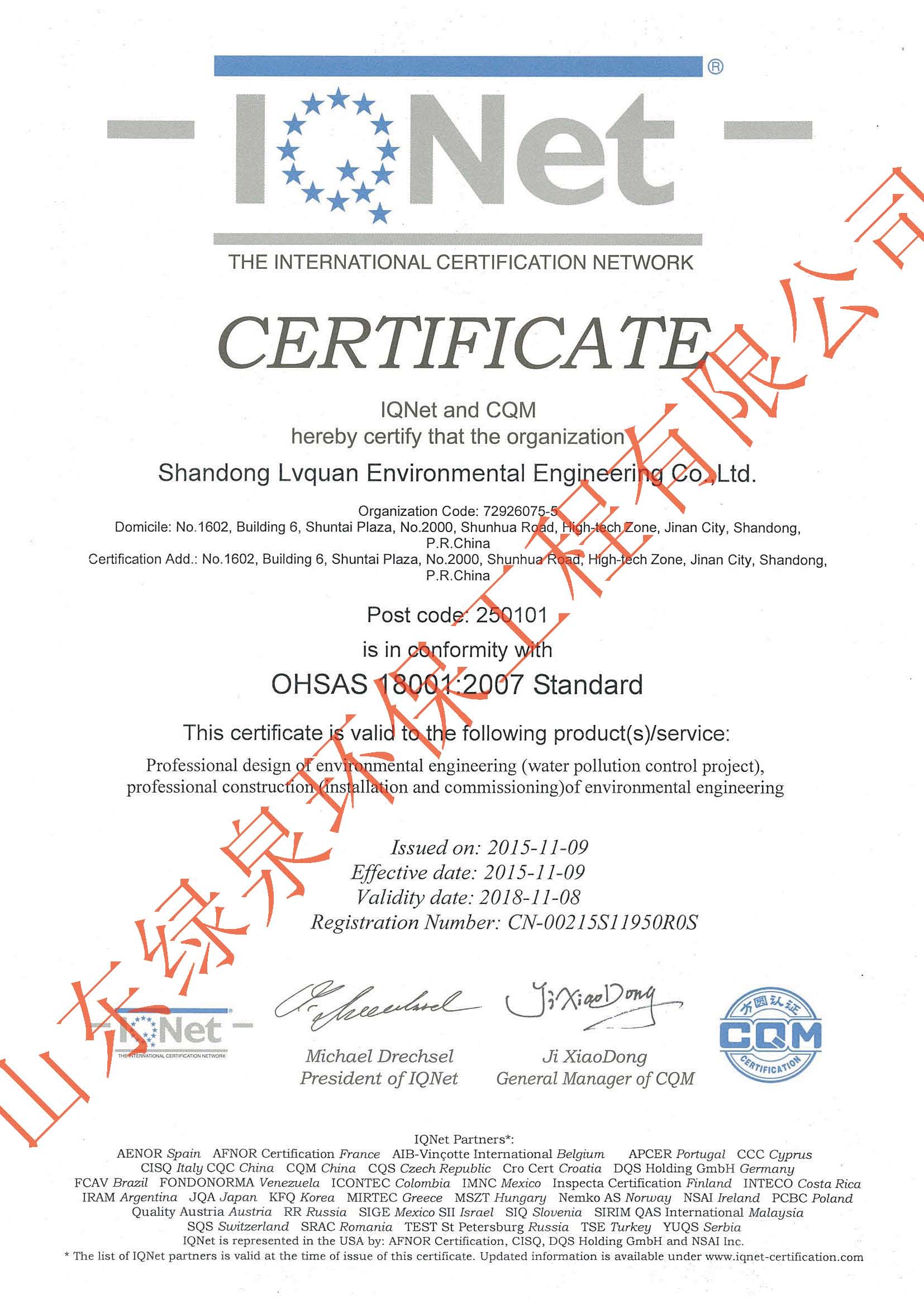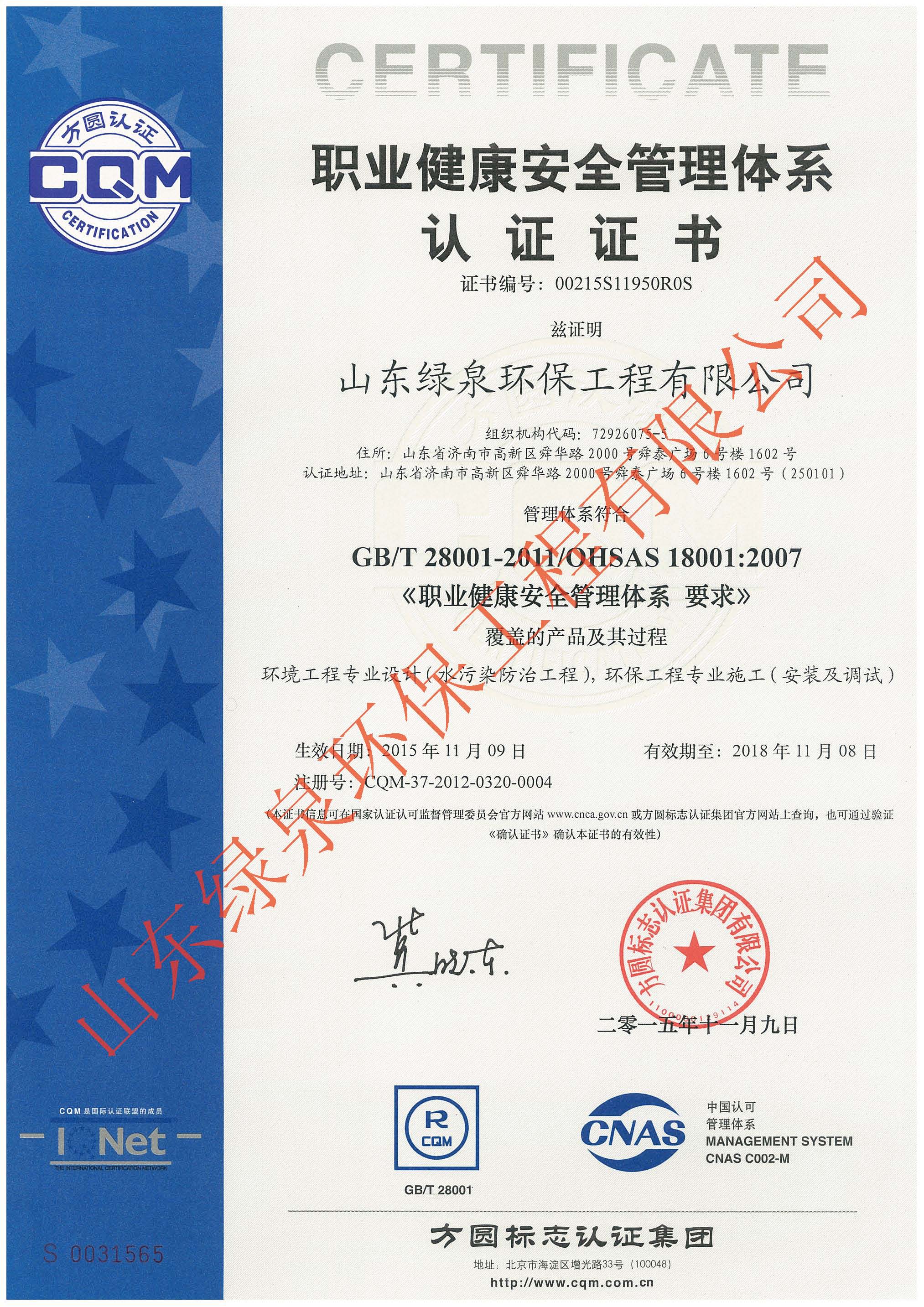 在公司員工的不懈努力下,經過方圓認證專家(jiā)的全面、嚴格、細緻的指導和(hé)審核,确認我公司環境/職業健康安全管理(lǐ)體(tǐ)系符合ISO14001:2004/OHSAS18001:2007标準的要求,并于2015年11月9日,向我公司正式頒發了ISO14001和(hé)OHSAS18001管理(lǐ)體(tǐ)系認證證書(shū)。
